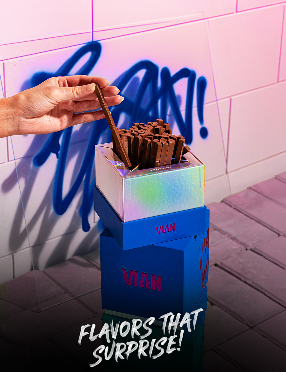 VIAN is a contemporary chocolate brand where extraordinary flavors meet a bold, youthful, and unconventional spirit. Inspired by a young, dynamic woman named Vian, the brand celebrates adventure, creativity, and self-expression, positioning chocolate as an emotional and lifestyle-driven experience rather than a traditional indulgence. From the outset, the goal was to create a brand that feels expressive, vibrant, and culturally relevant, one that naturally belongs in social moments, gatherings, and modern day-outs.